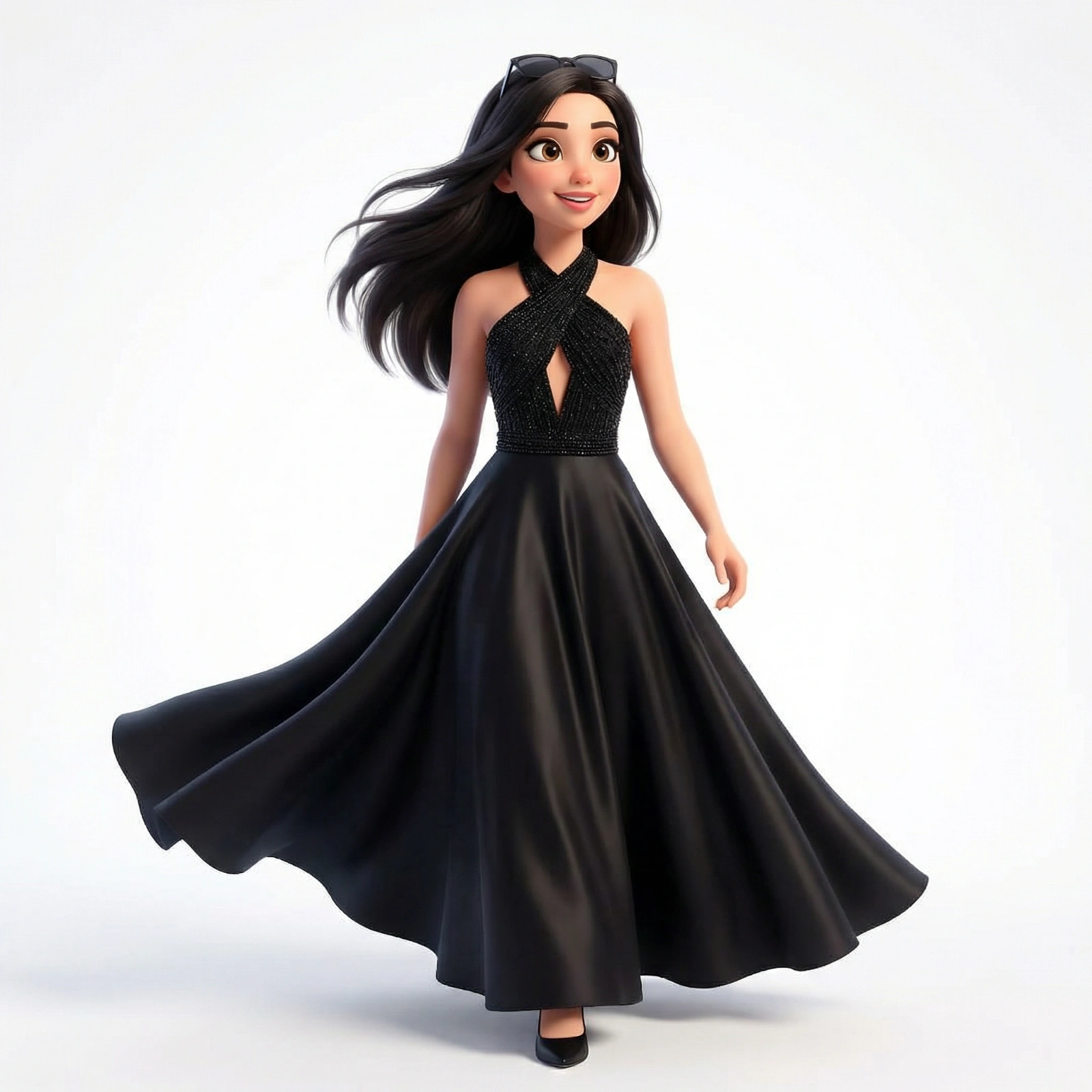 Convert the uploaded photo into a cheerful and cute 3D Pixar-style animated portrait. Keep the person’s facial features, hairstyle, and unique expression so the character clearly resembles the real person. Use a smooth and clean cartoon style. Apply soft skin shading, expressive eyes, and a polished animated look while preserving the original identity. Place the character against a plain white studio background with clean, even lighting. Keep the outfit the same as in the reference