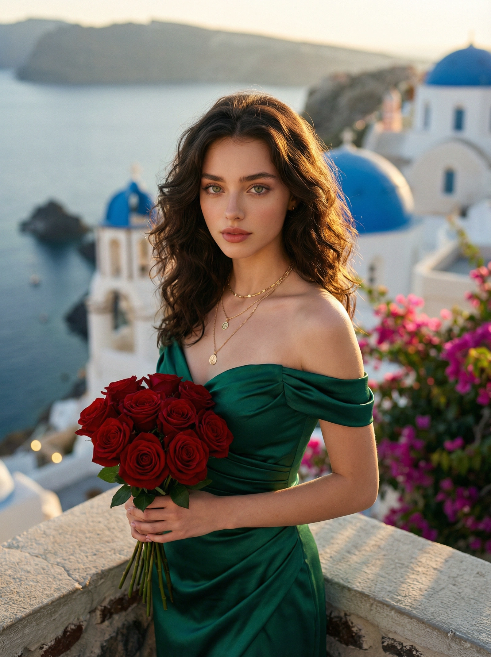 Photorealistic cinematic portrait of a stylish young adult woman, travel influencer glamour aesthetic, medium shot, eye-level camera angle, 3:4 aspect ratio. Subject in elegant fashionable outfit (user-defined color and style), well-groomed appearance, soft glam makeup, natural skin texture, expressive eyes, confident yet dreamy expression. Pose: (choose one – seated on ledge / standing confidently / walking naturally / leaning casually / hair-touch pose / editorial fashion pose). Body language looks natural and relaxed, influencer-style composition. Location: (insert famous landmark / city / travel destination). Foreground includes realistic environmental elements the subject interacts with. Background softly blurred with cinematic depth of field. Lighting: cinematic mixed lighting setup – warm key light on face and hair, ambient fill light from environment, practical or architectural lights in background creating depth and atmosphere. Time of day: (golden hour / blue hour / night / sunrise). Mood: cinematic, luxurious, romantic, atmospheric, travel editorial. Camera & render: high-end DSLR or mirrorless camera, portrait prime lens (50mm or 85mm), shallow depth of field (f/2.0–f/2.8), sharp focus on subject, realistic shadows and highlights. Post-processing: ultra-realistic textures, subtle 35mm film grain, natural color grading, high dynamic range, professional photography look, 8K ultra-HD quality. No text, no watermark, no logos, clean composition, social-media ready, premium aesthetic.