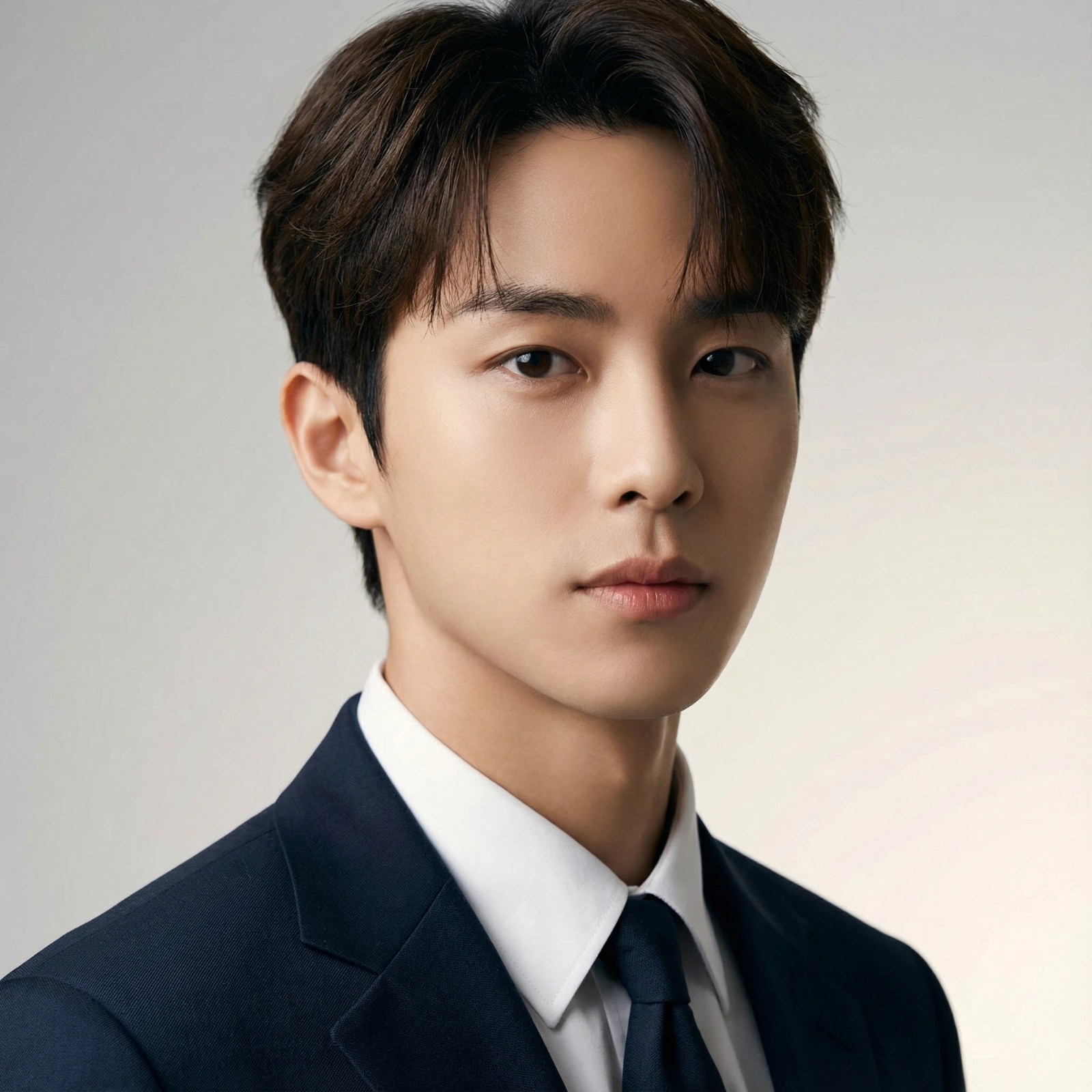 Ultra realistic professional business portrait based on the attached image. Keep the subject’s facial structure, skin tone, hairstyle, and expression accurate. Dress the subject in clean, modern professional attire suitable for executives. Use a soft, minimal, premium gradient background with smooth lighting transitions